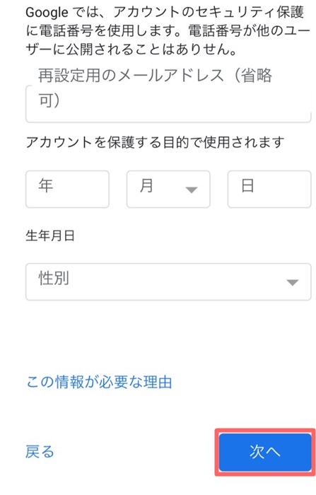 Googleアカウント作成時 電話番号登録の画面が出てくる場合の対処方法 Ringo